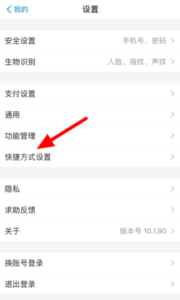 进入设置界面,点击【快捷方式设置】,如图,选择【快捷方式】为手机桌面,点击【扫一扫】功能,进行添加,