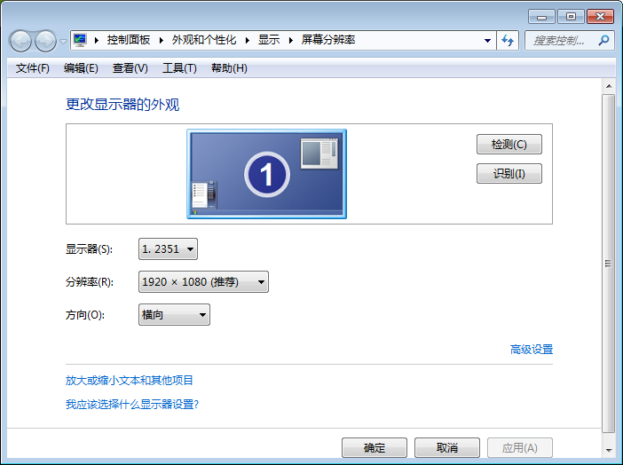 注意:如果对当前电脑分辨率不满意,也可以在此调节。