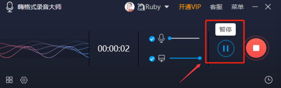 4、如果在录音的过程中,因为突然事件需要中断录音的话,可以点击“暂停”按钮。
