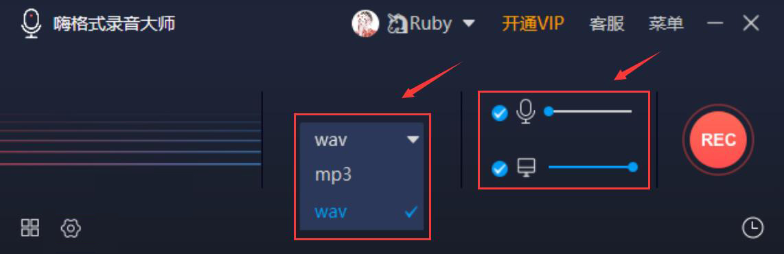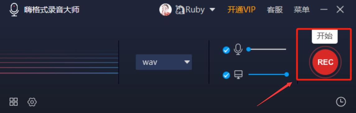3、接下来,点击“REC”红色按钮便可以用嗨格式录音大师高效完成录音工作。