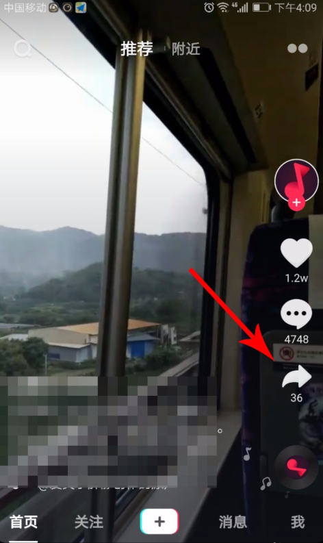 打开抖音APP,找到想举报的视频,点击右边的“分享”图标,