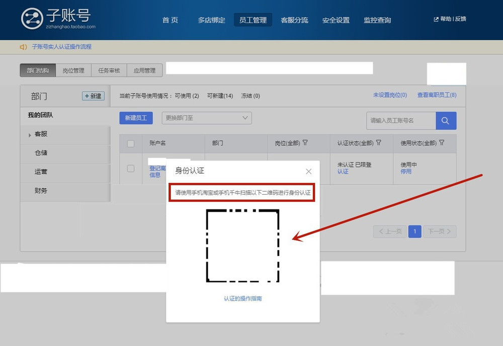 点击认证,就会出现认证二维码,使用手机淘宝或者手机千牛扫描二维码,进行身份认证,全程按照提示操作。