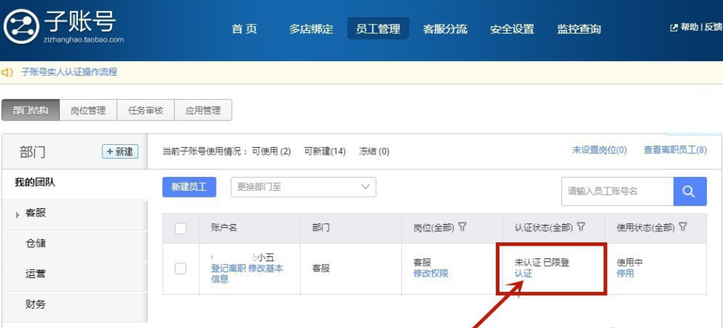 出现提示,点击【知道了】,进入员工管理窗口,点击认证即可,