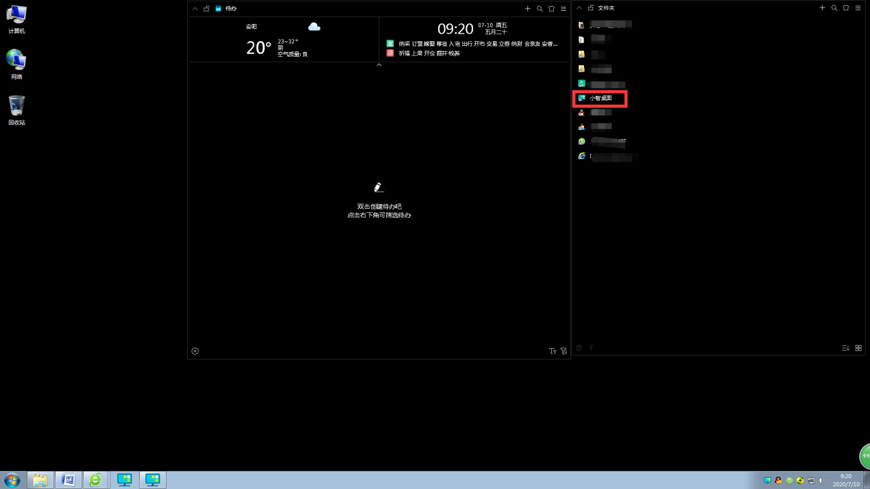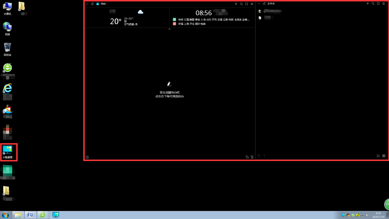 4、初次安装,小智桌面会对电脑桌面进行自动整理,主要是在桌面上新建乐待办和文件夹两个桌面窗口,用户可通过拖动放缩改变他们的位置和大小。