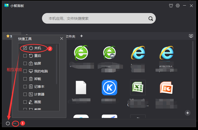 7、点击“小智面板”右下角省略号图标【…】,弹出快捷工具设置列表,通过勾选,可以将快捷工具图标一一设定到最下方空白条上。