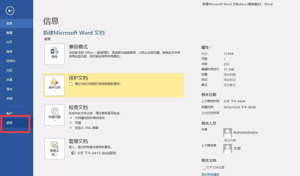 想让打印出来的文档显示水印,需要进行设置,在菜单栏中点击【文件】——【选项】,