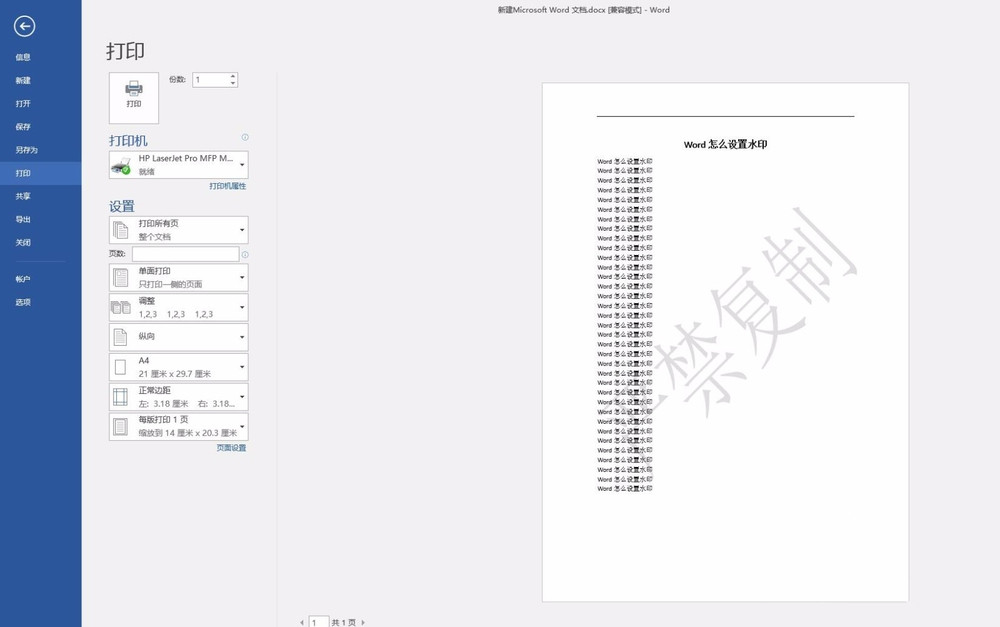 打印Word文档如何设置添加水印?
