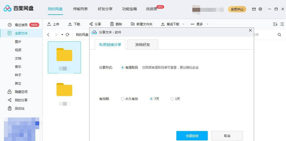 百度网盘如何创建私密链接分享文件?