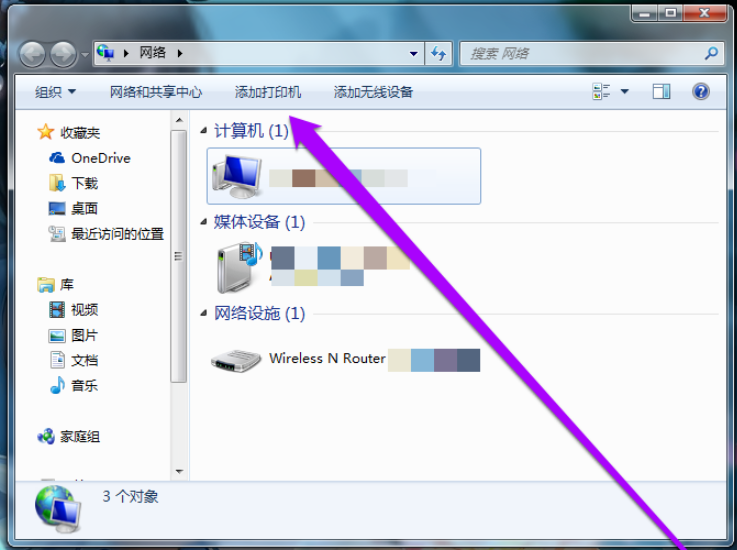 打开电脑,在桌面找到网络图标,点击进入,如图,点击上方【添加打印机】栏目,