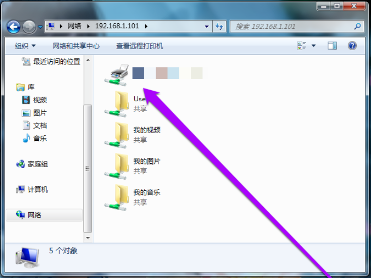 进入网络连接窗口,可以看到一个连接共享打印机的图标,图标下面是共享打印机的IP,