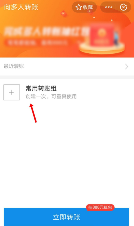 如图,这里有一个【常用转账组】选项,点击它,进行创建,后续可以重复使用,