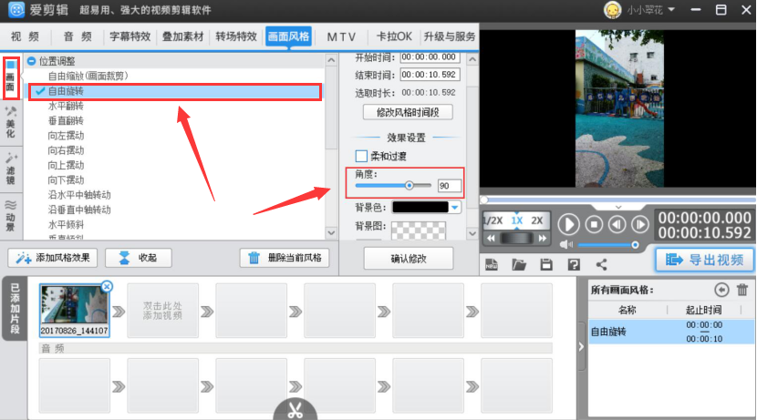 爱剪辑如何旋转视频画面?