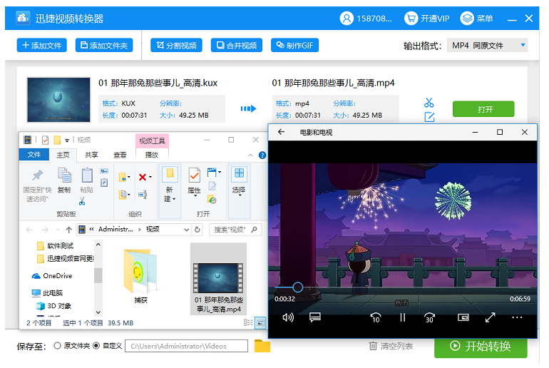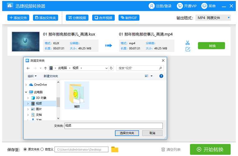 如图,kux视频已成功转换成MP4格式,使用其他播放器进行播放,视频显示正常,