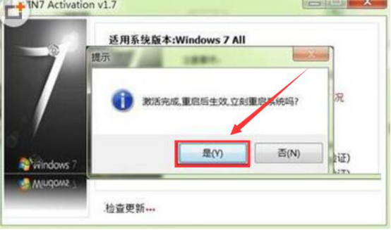 5.当激活完成时,win7激活软件activation会弹出如下图的提示窗口,用户点击“是”,将系统重启。
