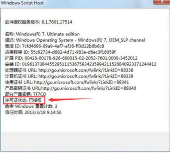 9.最后,再次验证许可证状态是否已经授权,如果都已经授权了,那说明win7系统被软件activation成功激活了。