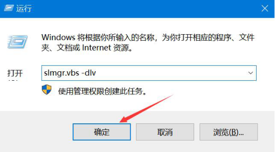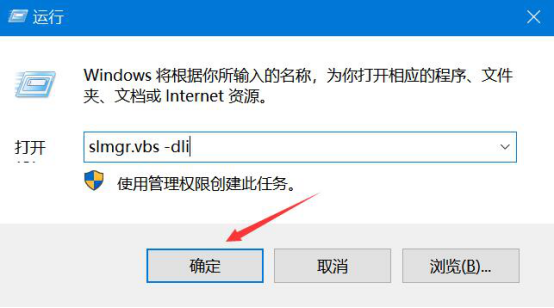 8.接着,我们再次“Win+R”打开运行,在运行的文本框中输入“slmgr.vbs -dli”,并点击“确定”按钮。