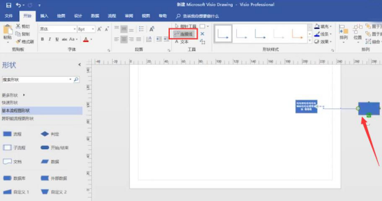 6.单击选择某个图形,再点击visio属性栏中的“连接线”即可连接到目标图形,如下图所示。