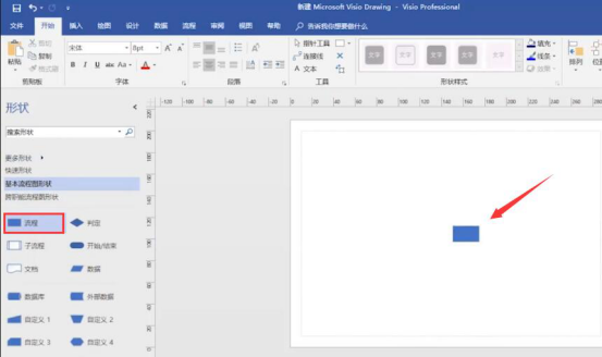 4.接下来,在visio画流程图的时候,用户根据自己想要的流程图效果,按住界面左侧的“基本流程图形状”中的图形拖放到右侧绘图区域放手,即可得到对应的图形,如下图所示。
