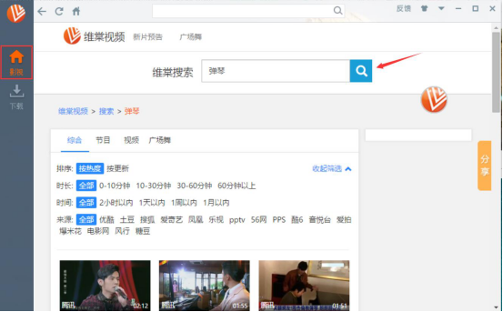 3.然后,在维棠flv视频下载软件的界面中,点击左侧的“影视”,从其右侧的搜索框中输入自己想要的视频名称进行检索。
