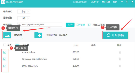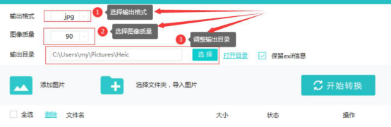 4.最后,点击“添加图片”将需要转JPG的HEIC图片导入,再点击“开始转换”按钮。Heic图片转换精灵便开始执行将HEIC图片转JPG的指令了。