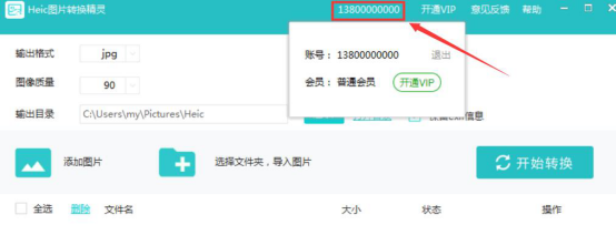 2.然后,在Heic图片转换精灵中可以看到用户是会员,也就可以进行下一步HEIC格式转JPG格式操作了。