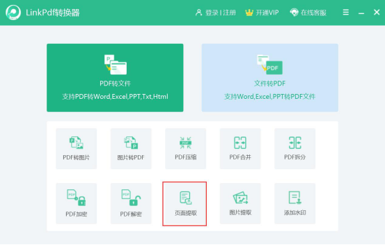 1.首先,用户将linkpdf转换器打开,打开后点击功能向导页面中的“页面提取”。