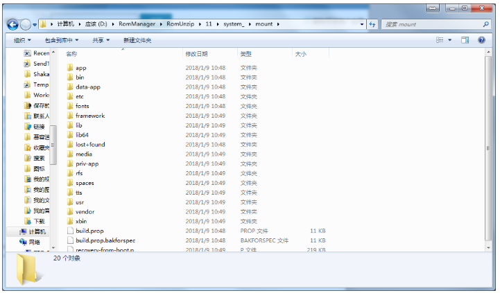 如果选择打开所在目录,你会看到system分区的所有内容,可以选择性删除其他文件和内容,建议不要改动不清楚的文件,