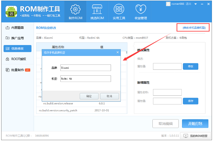 点击【信息修改】,进入以下界面,点击【修改手机品牌机型】,进行相关修改,