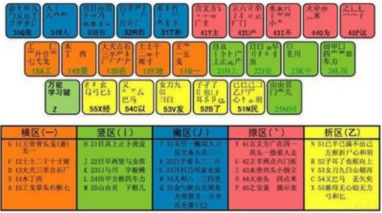 从上图中,你可以看到其实它的字根基本都是我们汉字中的偏旁部首。同时,还会自创出一些比较生僻的字根,帮助用户快速打出自己想要的文字。王码五笔输入法的字根是分布在除了Z键外的25个键上。而且,那25个键位各自还对应着不同的字根,数量也不一。