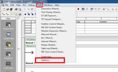 1、打开安装好的s7-200,依次点击图中【Tools】—【Options...】。