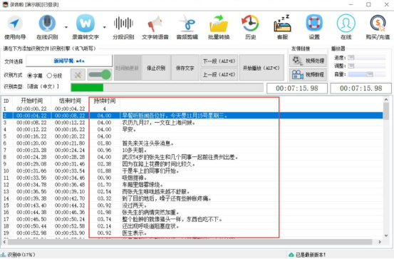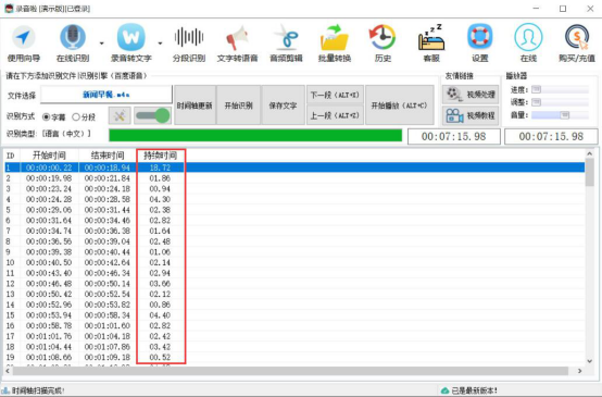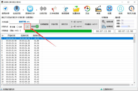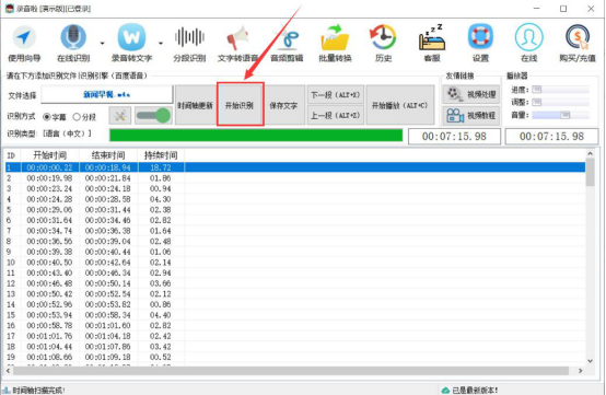 6.录音啦语气停顿识别设置完成了,就可以点击“开始识别”按钮。