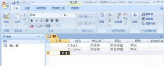 3.然后,进入到access2007的主操作界面。用户便可以根据自己的需要,编辑具体的数据库内容。