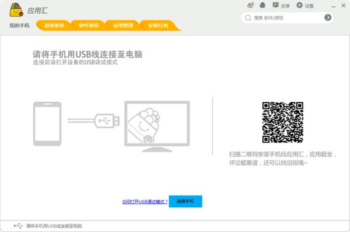 应用汇安卓游戏助手是一个电脑安装程序,专注于通过电脑在用户的手机上安装优秀的安卓平台游戏。该软件中涵盖了国内外高质量、流行的安卓游戏及软件,支持快速下载、一键式更新、兴趣匹配、手机管理等功能。应用汇安卓游戏助手电脑版和腾讯手机管家进行合作,这就使得我们下载的应用程序更加的安全,用户可以放心使用。
