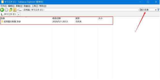 3.接下来,在该磁盘中,在文件搜索框中输入自己想要快速查找的文件关键词,Tablacus Explorer便会在文件展示列表中检索出与关键词相关的文件夹了,如下图所示。