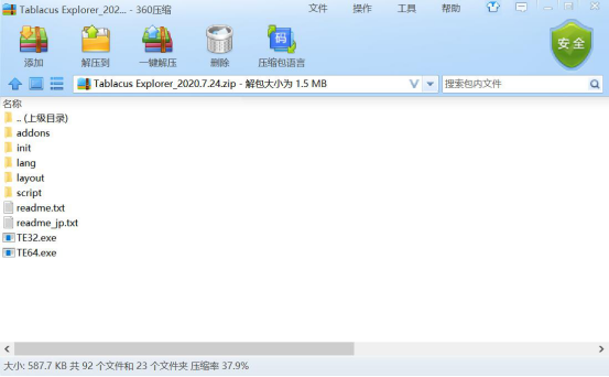 1.首先,用户可以从本站下载Tablacus Explorer。下载后解压安装包,点击“.exe”应用程序运行,不用安装。