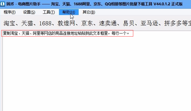 1.打开电商图片助手,将目标链接复制到软件里面即可,如果是多个链接,一行复制一个链接。