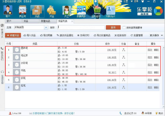 6.此时,便可以在乐掌柜中看到自己录入的所有货品资料了。