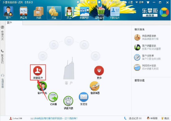 10.乐掌柜快速入门时的录入货品资料和供应商资料学会后,我们接着说说乐掌柜入门时怎么录入客户资料。点击“客户”菜单页中的“新建客户”。