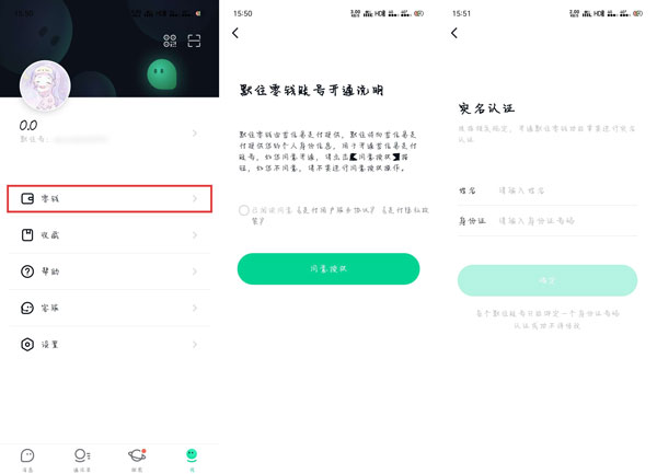 7.24小时之后,重新使用之前的手机号码注册一个新的账号,然后进入【我 - 零钱】进行实名认证;