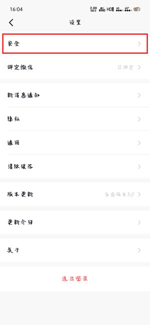 3.在设置中,选择【安全】进入下一步操作;