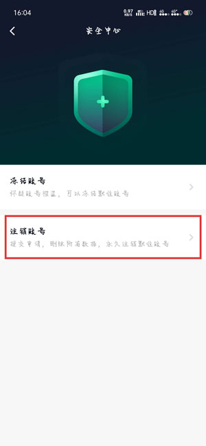 5.在安全中心内选择【注销账号】一项,进入提交账号注销申请页面;