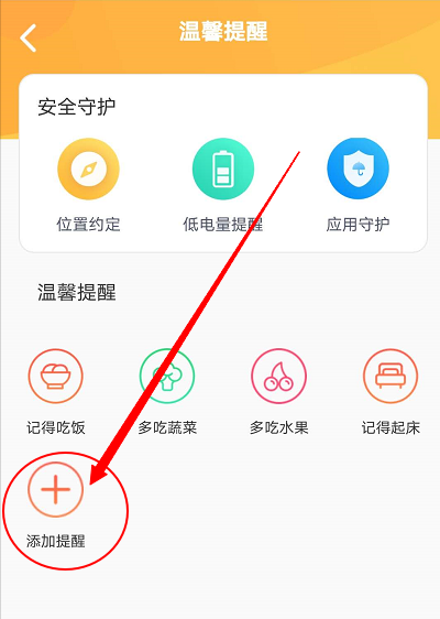 3、在温馨提醒界面,点击下方的添加提醒进入添加提醒界面。