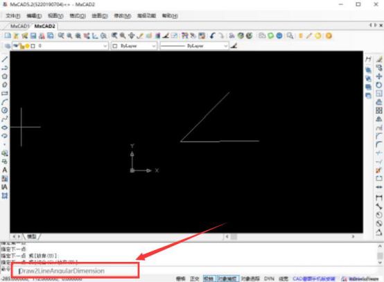 3.此外,我们也可以直接在梦想CAD的命令行中手动输入角度标注命令:“_Draw2LineAngularDimension”。