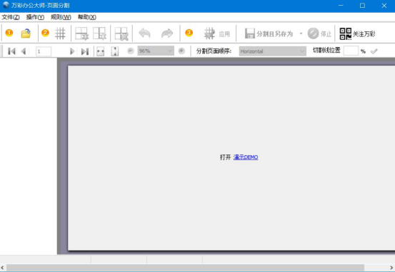 3.接下来,我们在万彩PDF大师的页面分割功能界面中,可以看到它有三种分割线方式。本文中,我们点击应用水平分割线。
