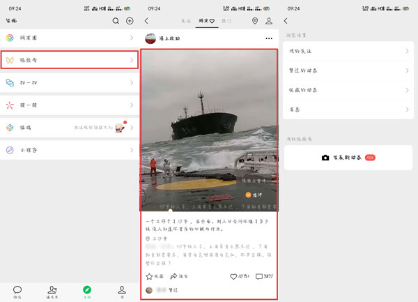 4.在看视频时,可以看到微信好友点赞过的视频,也可以看自己请关注的博主发表的视频;