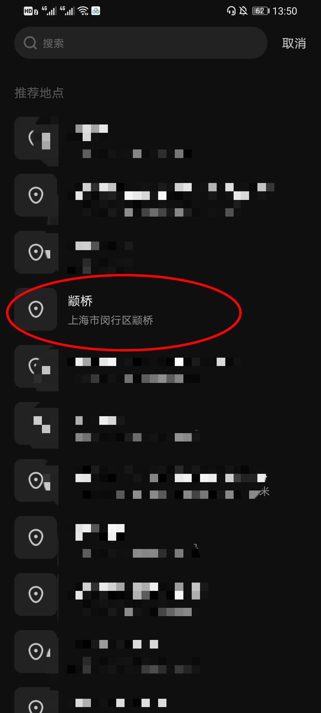 4、在定位界面,选择自己最合适的定位点击即可,或者是通过搜索框进行搜索定位。