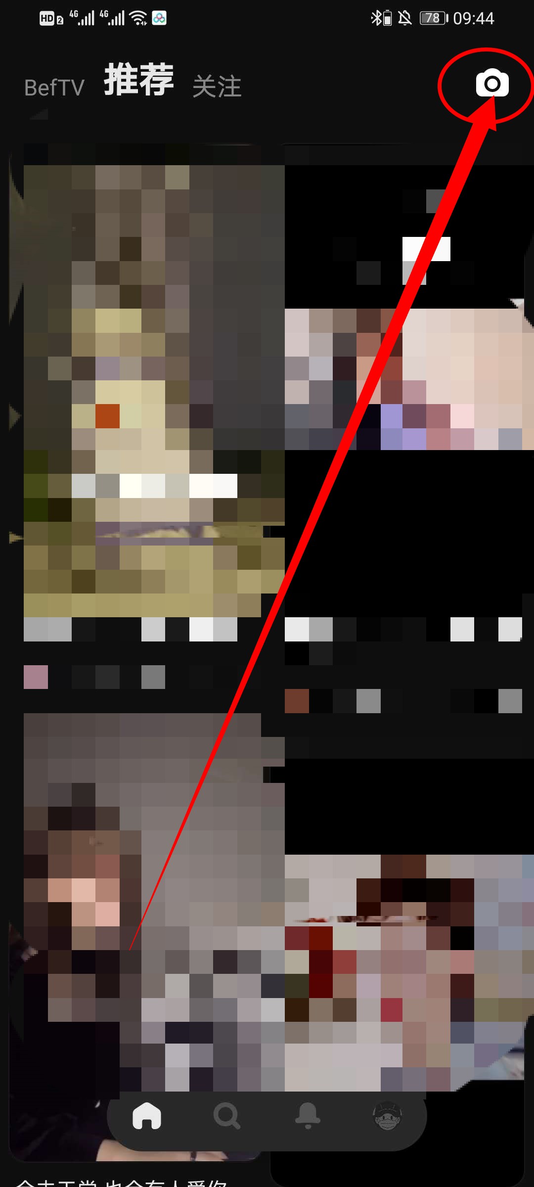 1、打开Before社区app,在首页点击右上角的相机,进入发布作品界面。