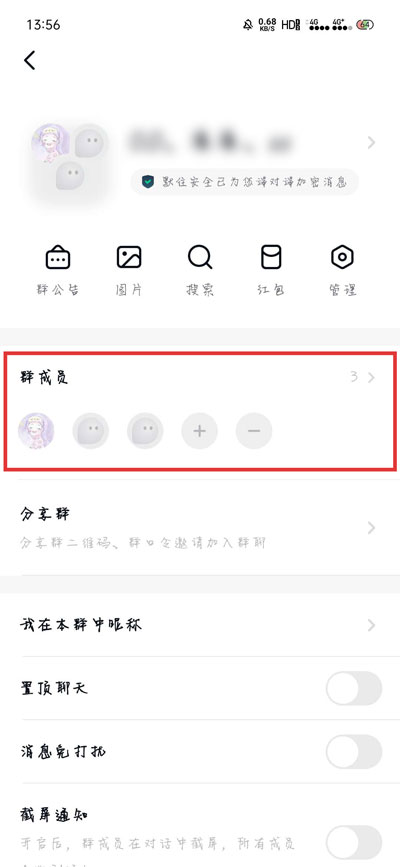 2.我们可以点击群成员右侧的【-】打开删除成员页面,也可以点击【群成员】进入查看所有群成员;