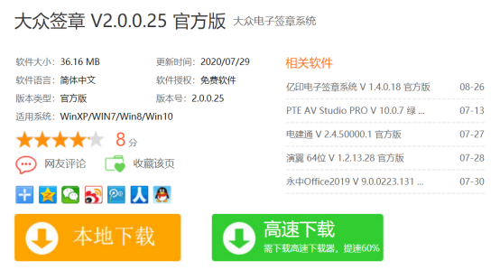 1.首先,可以从本站下载大众签章的客户端,下载后进行完成安装。