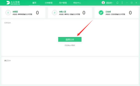 2.然后,进入大众签章的操作界面,点击“选择文件”按钮。
